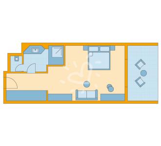 Klimaanlage: individuell regelbar, zentral gesteuert Fußboden: Fliesenboden Safe: ohne Gebühr Kühlschrank Telefon, Internet: WLAN/WiFi: ohne Gebühr, Fernseher: Flatscreen, deutsches Programm, Sat-TV Reinigungsservice: täglich Dusche, WC, Föhn, Kosmetikspiegel Balkon oder Terrasse: mit Sitzgelegenheit